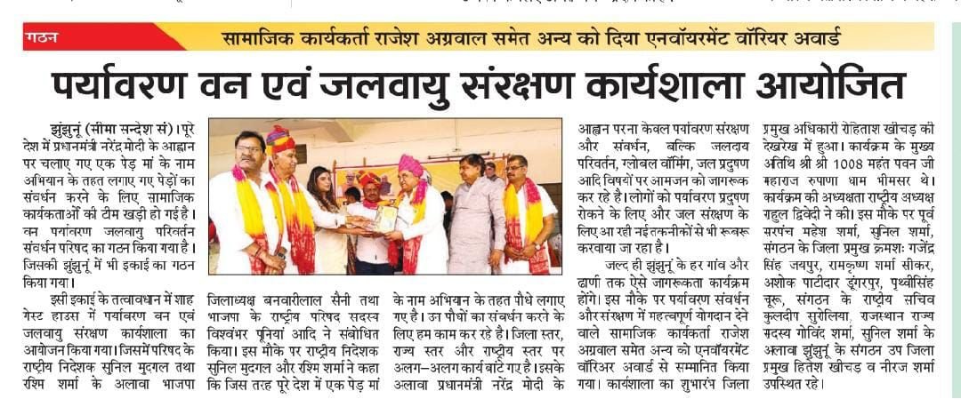 Environmental protection, forest conservation, climate resilience, women empowerment, education, healthcare, sanitation awareness, and community development.